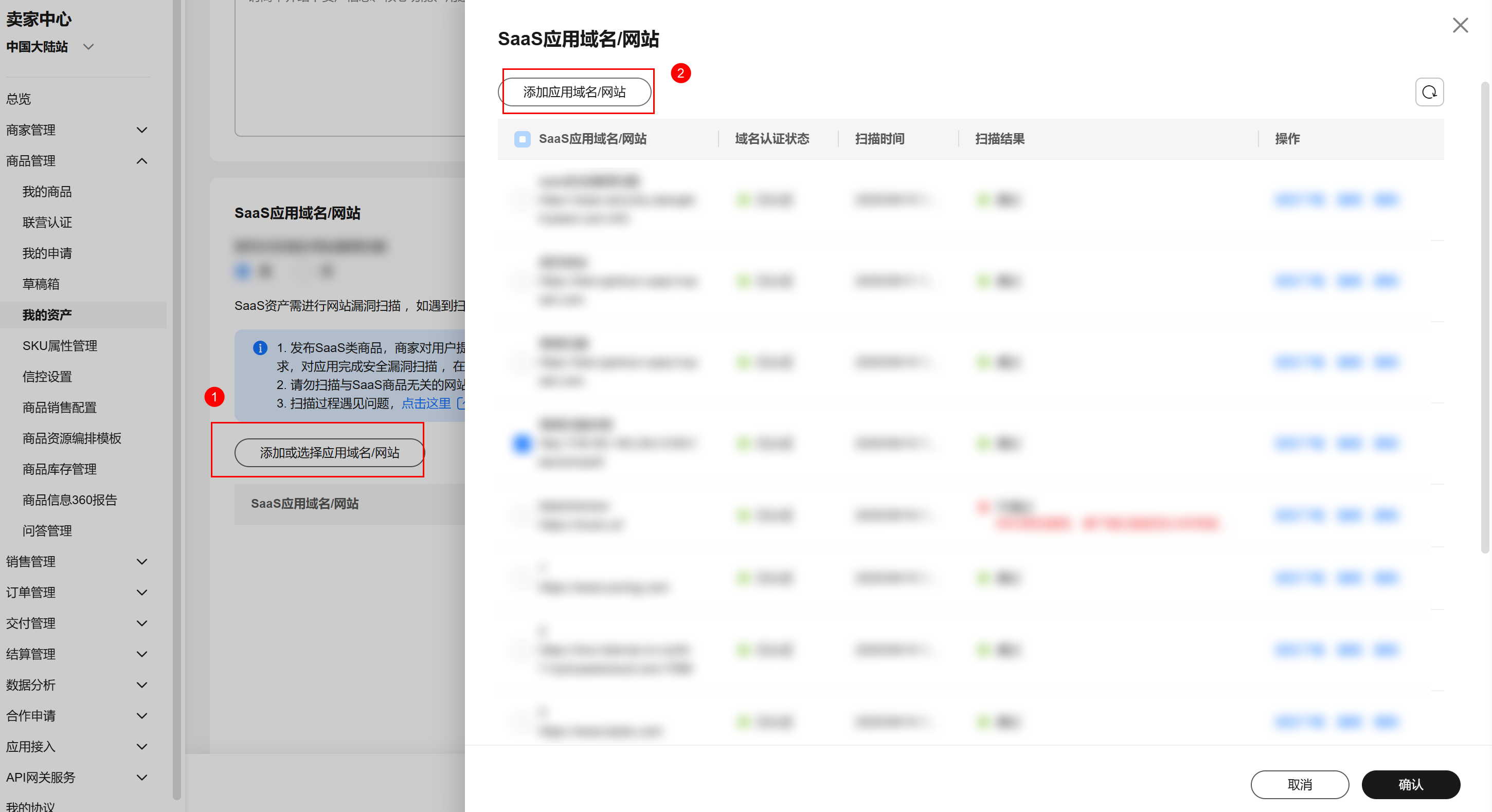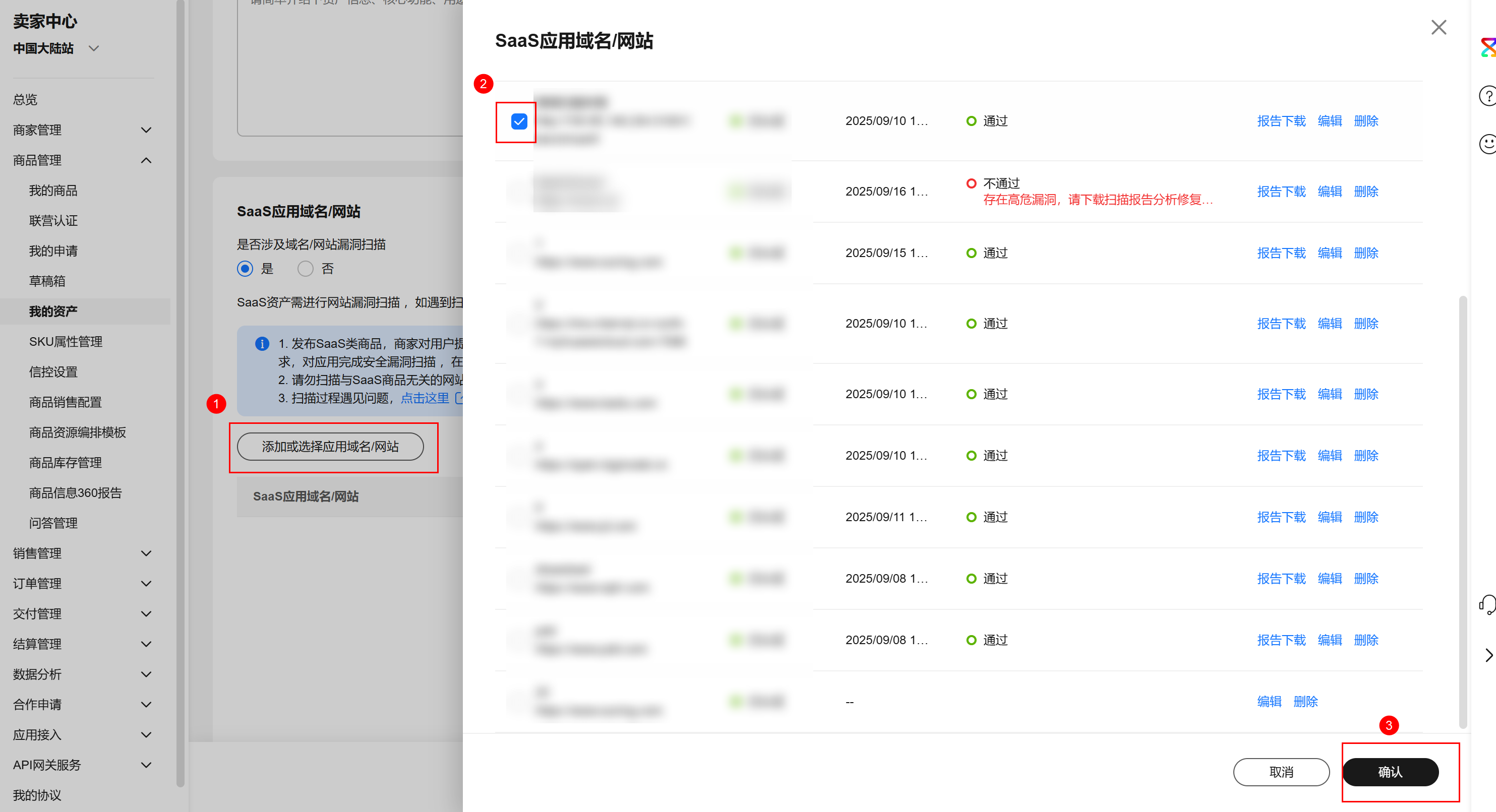 - 如上架商品的saas应用域名已添加过安全扫描,请勾选即可;