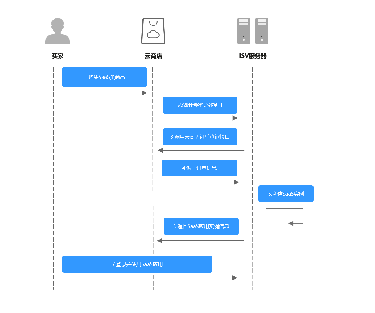 用户购买商品并付款成功,云商店将调用本接口通知商家创建实例,商家需要结合saas应用的实际情况,给用户开通saas服务,比如:saas网站的账号、密码等。