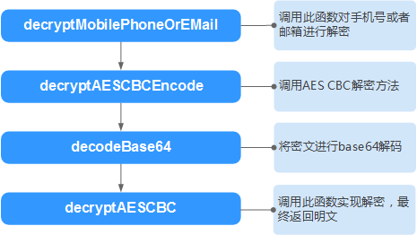 /** * * 解密手机号码或邮箱 * @param key 密钥* @param str 密文 * @param encryptlength 加密长度 * @return 解密结果 */ public static string decryptmobilephoneoremail(string key, string str, int encryptlength) { if(null != str && str.length() > 16) { string iv = str.substring(0, 16); string encryptstr = str.substring(16); string result = null; try { result = decryptaescbcencode(encryptstr, key, iv, encryptlength); } catch (invalidkeyexception | nosuchalgorithmexception | nosuchpaddingexception | invalidalgorithmparameterexception | illegalblocksizeexception | badpaddingexception e) { //todo:异常处理 } return result; } return null; }
