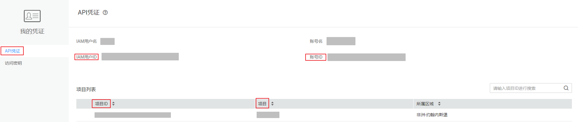 - 在“api凭证”页面的项目列表中查看项目id。