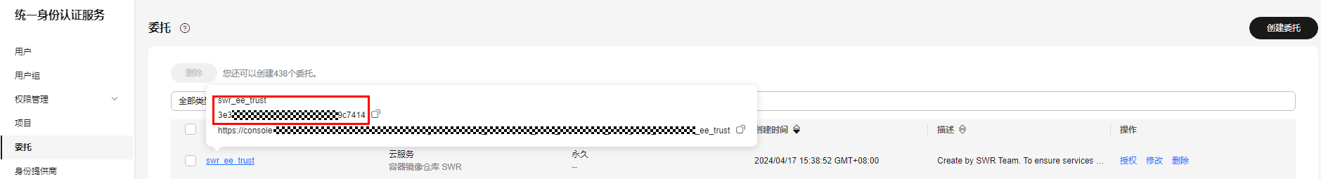 - 鼠标移动到需要查询名称和id的委托上,气泡框中出现的第一行为委托名称,第二行为委托id。