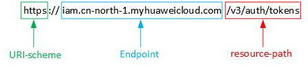 例如您需要获取“西南-贵阳一”区域的token,则需使用“西南-贵阳一”区域的endpoint(iam.cn-southwest-2.myhuaweicloud.com),并在获取用户token的uri部分找到resource-path(v3/auth/tokens),拼接起来如下所示。