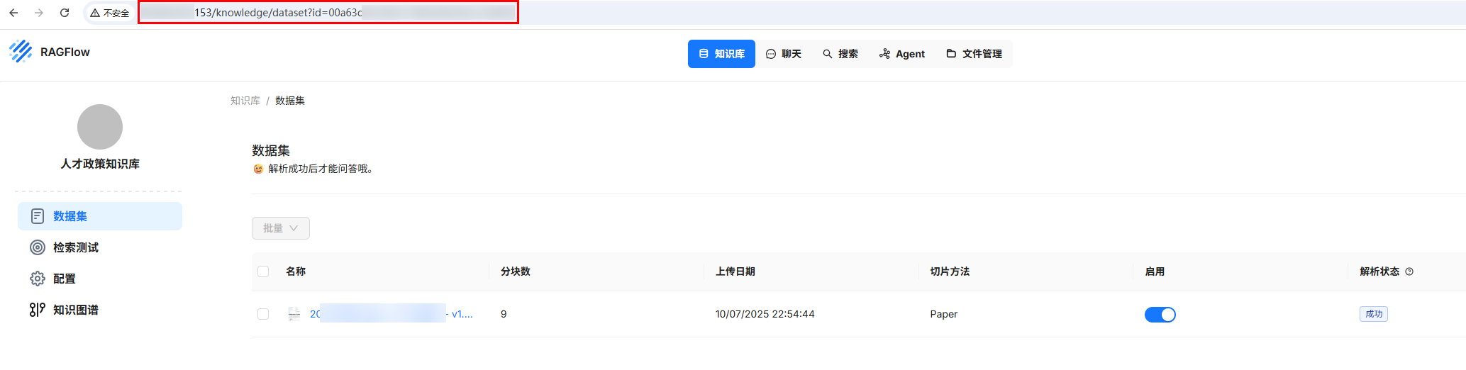 - 在ragflow里创建一个知识库,并上传相关文档。
