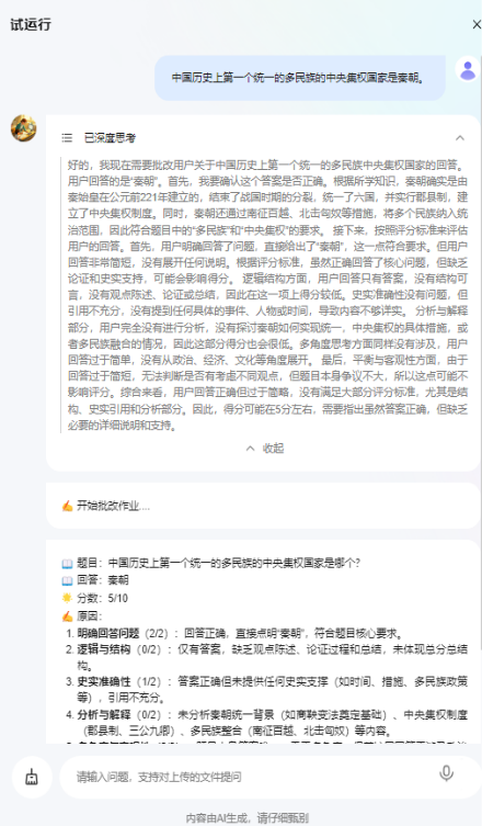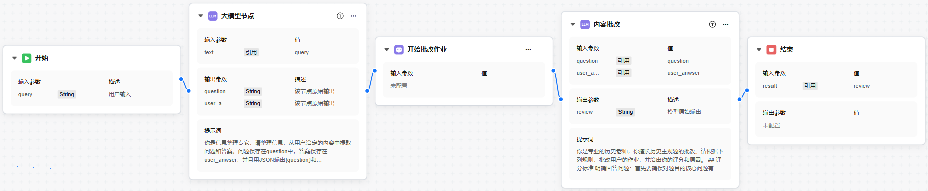- 大模型节点-内容批改:该节点利用大模型,解析出用户的问题,并用文本格式输出。