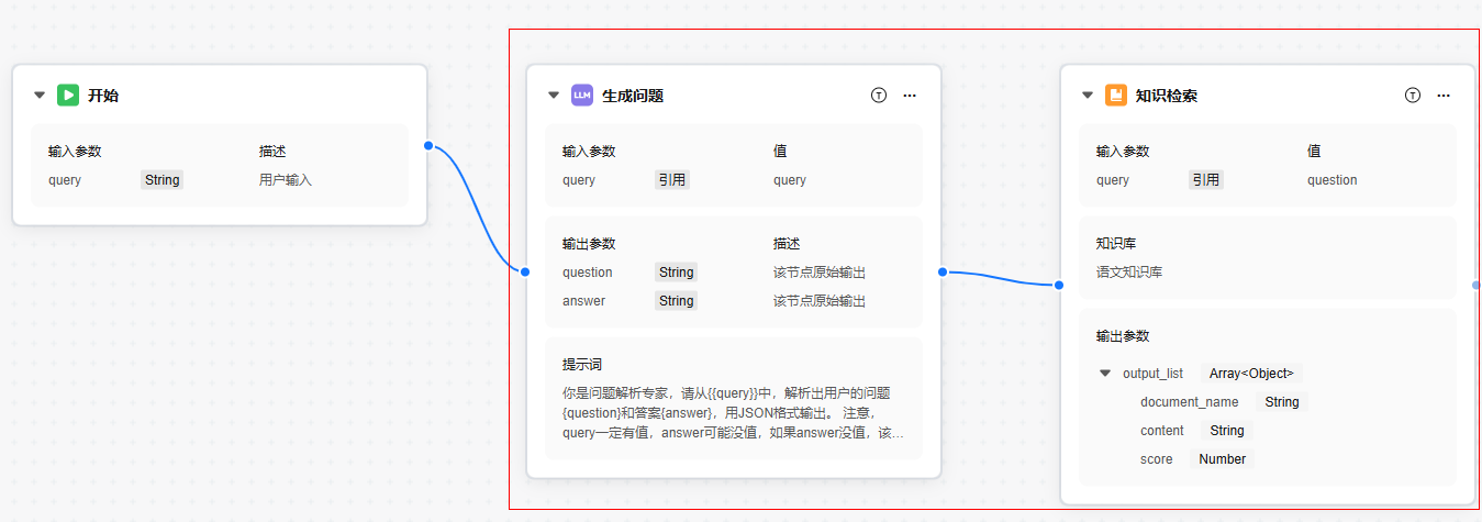 - 类型、值:选择“引用>question”。question为“生成问题”节点的输出变量值。
