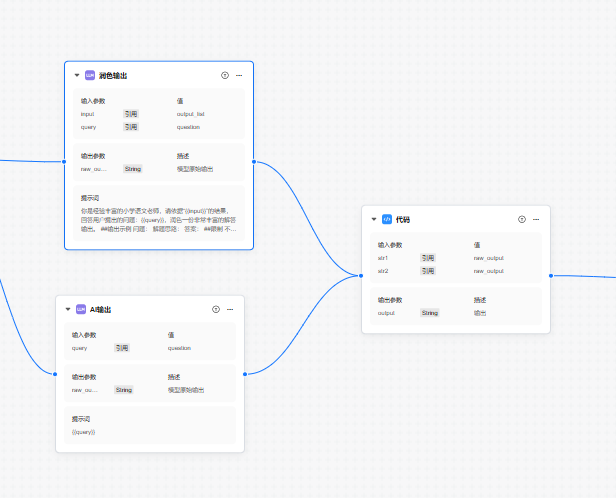 图14 连接“润色输出”大模型节点和“ai输出”大模型节点到代码节点
