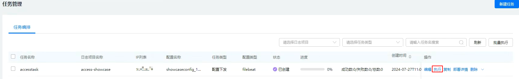 - 在任务列表中查看已创建的任务,单击任务所在行“操作”列的“执行”,如图1所示。