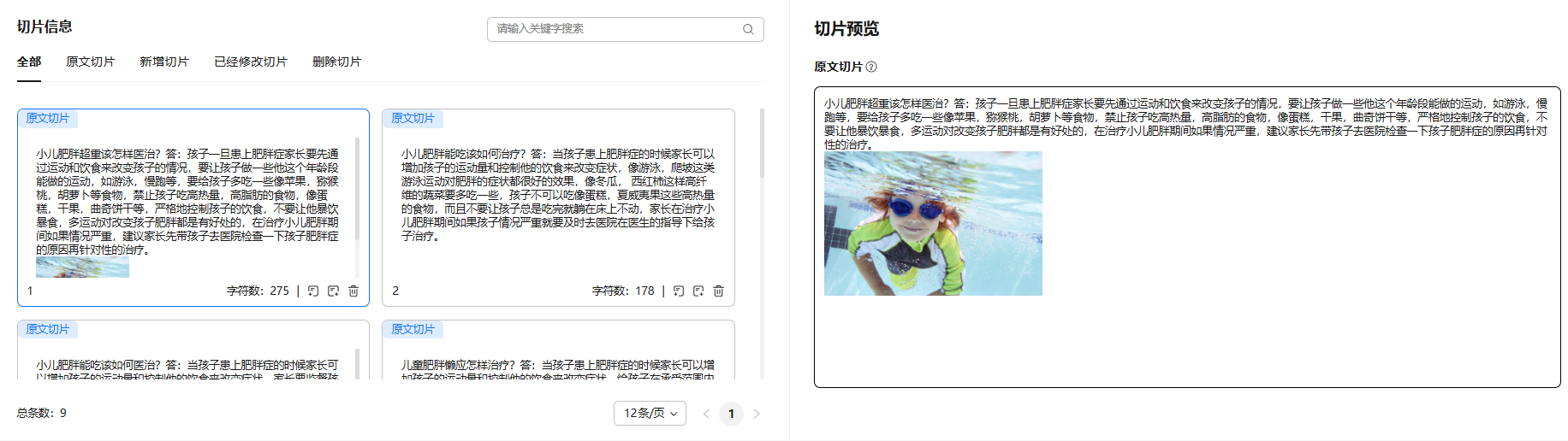 - 上传儿科问答知识.pdf文档,对文档进行自定义切分。切分出来的切片为“问答对”格式(包含图片),切片效果如图1所示。
