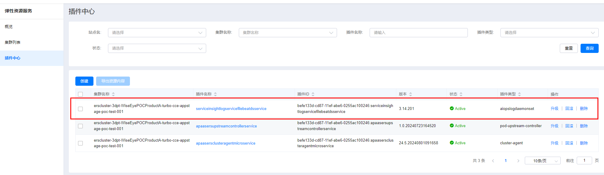 单击该空间所在行“操作”列的
