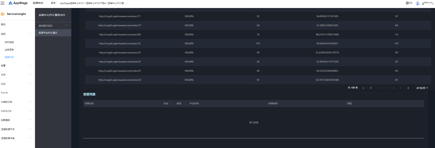 ,选择“运维 > 监控服务(serviceinsight)”。 - 选择左侧导航栏的“监控 > 报表开发”。