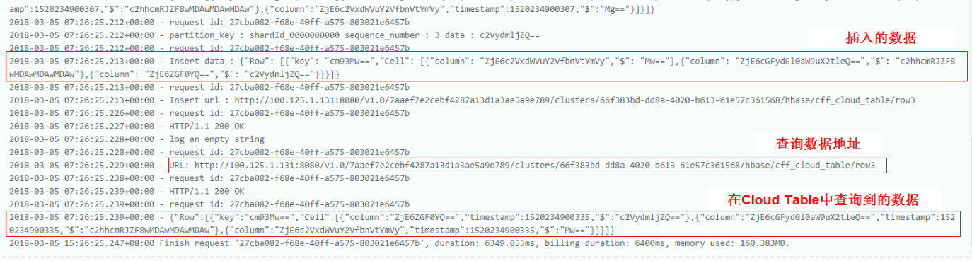 2. 函数执行成功后,部分函数日志如图2所示,全部的日志信息,可以到“日志”页签查询。