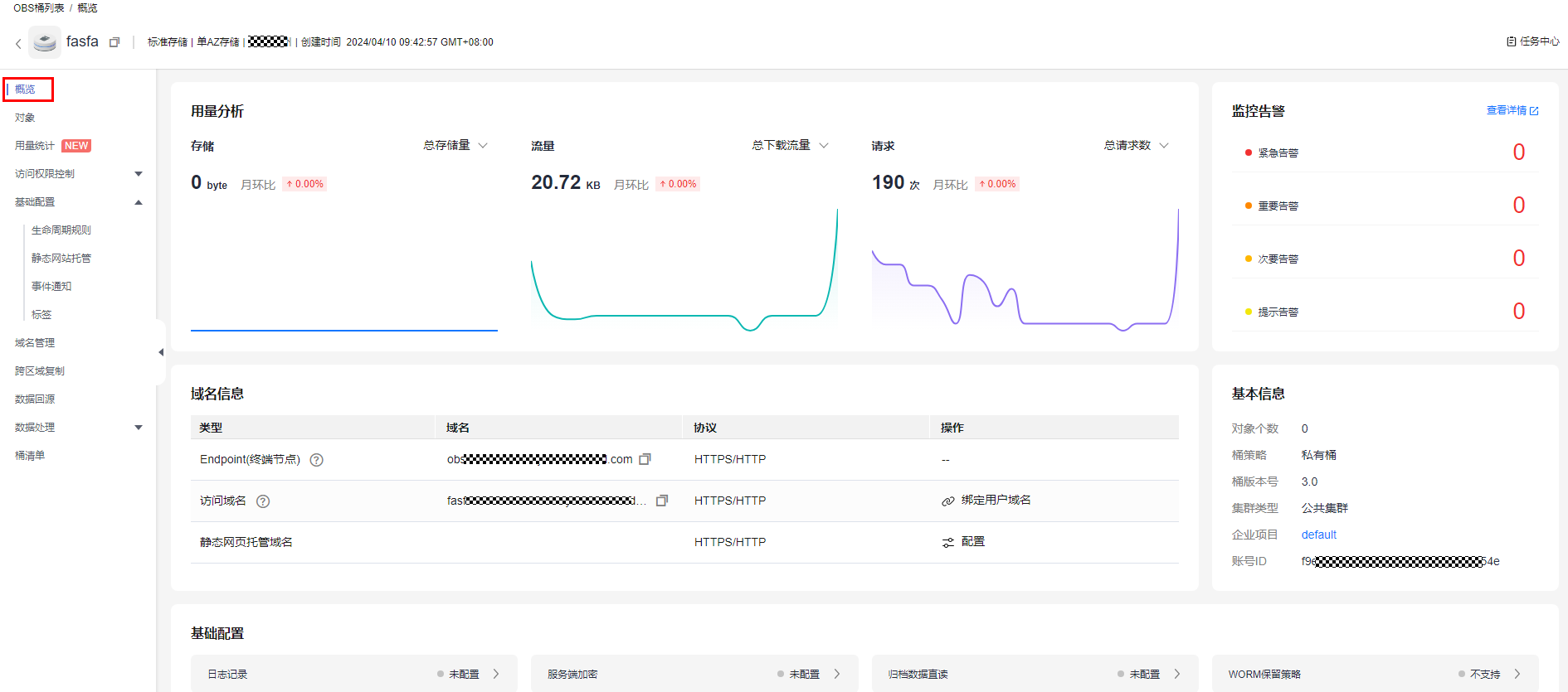 在obs对象存储服务创建obs桶和obs对象,并配置事件通知。