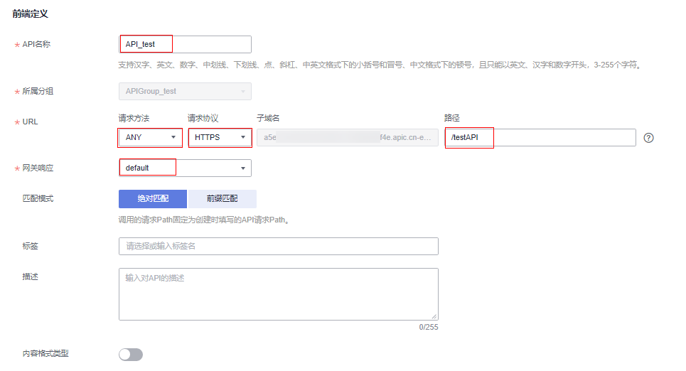 - api名称:输入您自定义的名称,例如api_test。