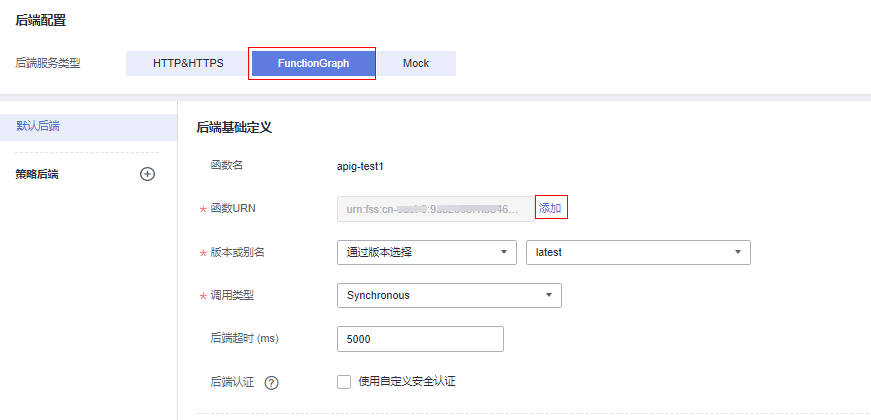 - 后端服务类型:选择“functiongraph”