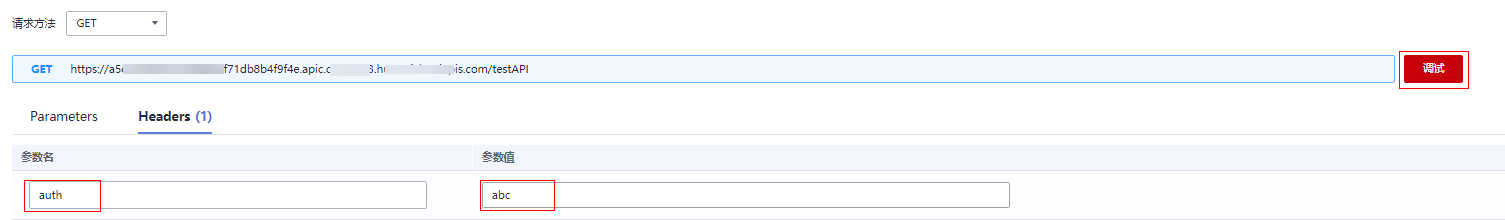 api网关提供了在线调试的功能,因此一般建议在api网关上完成api配置之后,可以先通过此功能确认api是否配置成功。