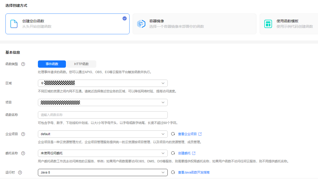 - 创建java函数(按照业务划分,每个部署单元对应一个函数),如图1所示,具体创建函数详情请参考创建函数。