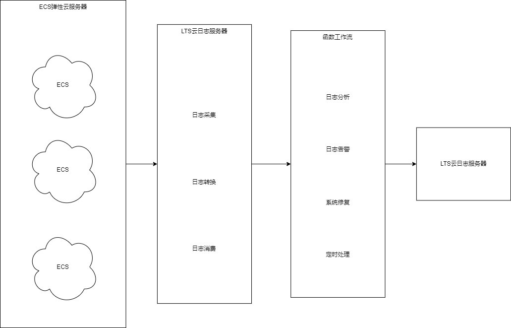 通过函数工作流服务中的函数创建lts触发器获取日志数据,经由自定义函数对日志中的关键信息进行分析和处理,把过滤后的日志转存到另外的日志流中,如图1所示。