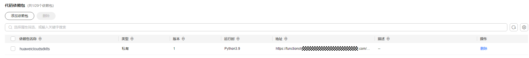 (3)制作函数b需要的 lts 依赖包,具体添加依赖方法请参考如何在函数平台创建依赖包和如何为函数添加依赖包。制作依赖包时可以参考命令“pip install huaweicloudsdklts”。同时,中包含了已适用于python3.9的huaweicloudsdklts依赖。