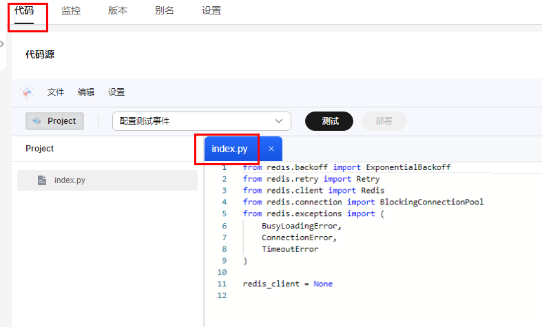 - 根据redis实例类型选择覆盖函数代码详情页中index.py内的代码。