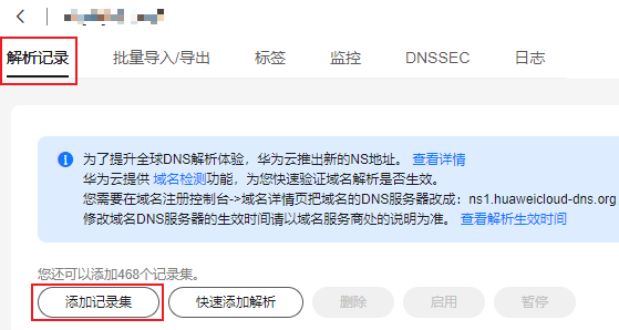 - 如图4所示,在“解析记录”页签下,单击“添加记录集”。