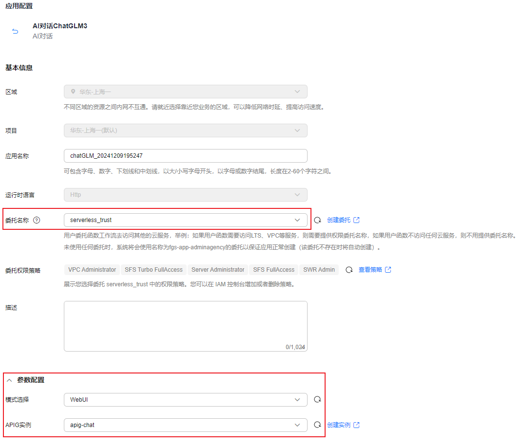 填写完成后如图2所示,单击“立即创建”。图2 ai对话chatglm3应用配置