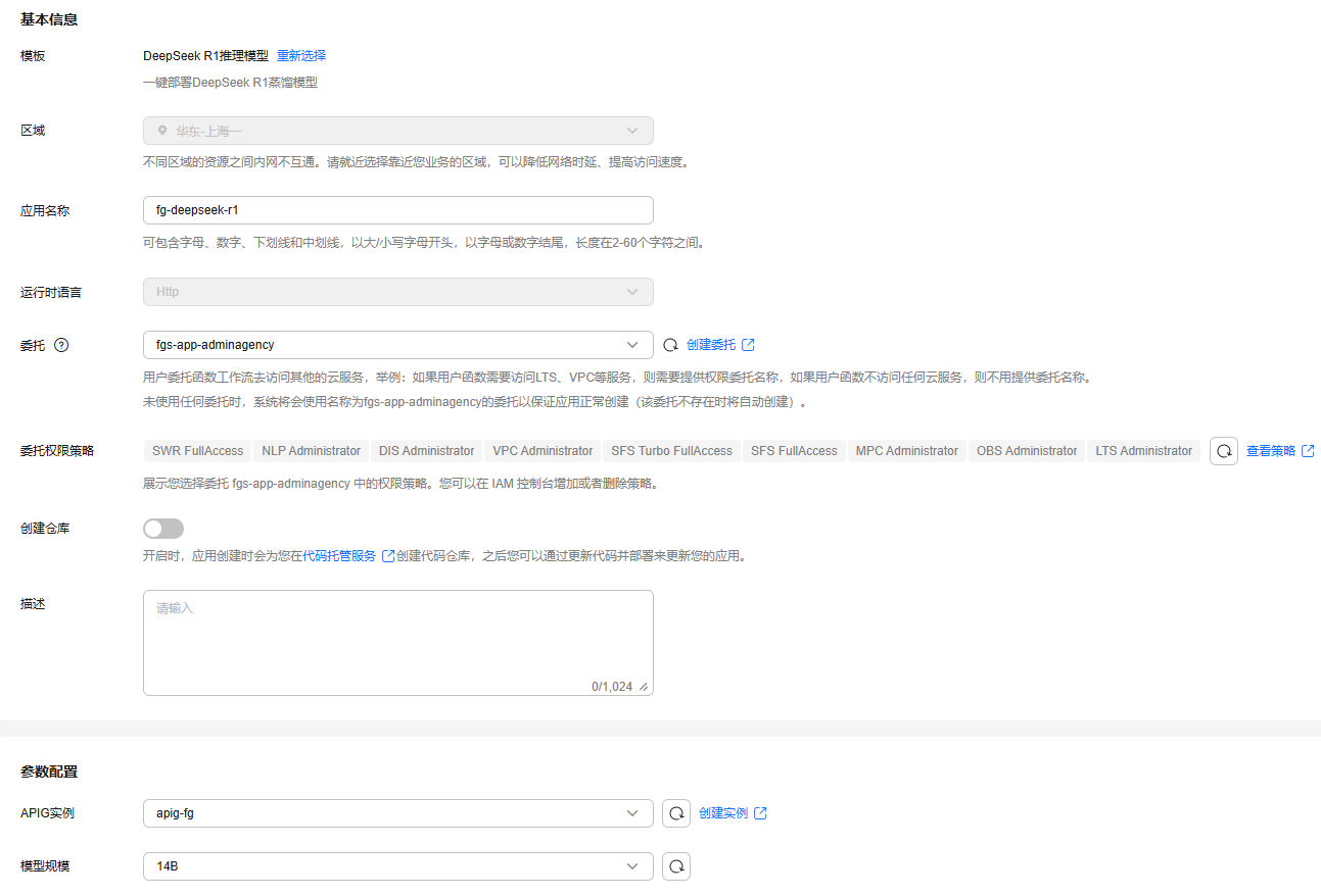 图1 创建deepseek应用模板