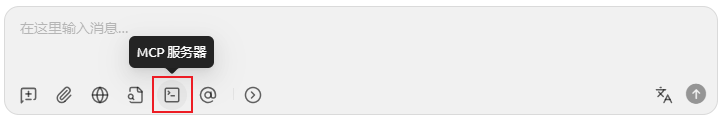 - 单击聊天框处的mcp服务器按钮,选择2配置的mcp服务器。