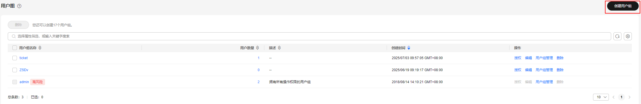 - 在统一身份认证服务的左侧导航空格中,单击“用户组”>“创建用户组”。