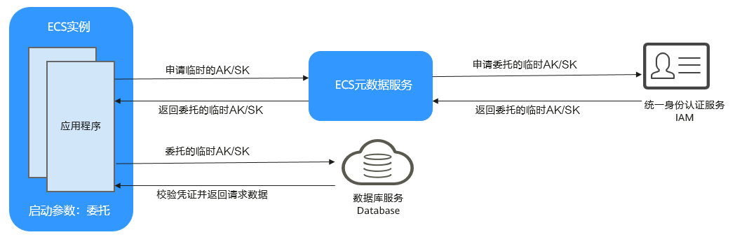 假如您是一位开发者,开发了一个应用程序,这个应用程序运行在ecs实例上,应用程序的代码中涉及调用openapi访问华为云服务。您的应用程序若想要以更安全的方式访问云服务,需要获取临时访问凭证,而iam的委托功能,则支持通过ecs委托获取临时访问密钥。图1 通过ecs委托获取临时访问密钥
