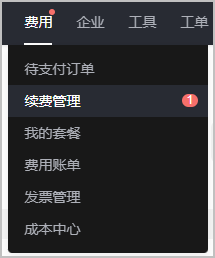 登录后,进入控制台,单击“费用”进入,或在“费用”下拉框中选择需要查看的功能。