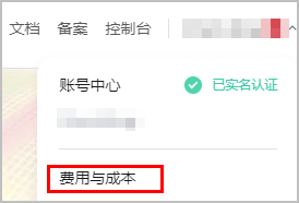 登录后,单击页面右上角的账号名称下拉框,选择“费用与成本”,进入。