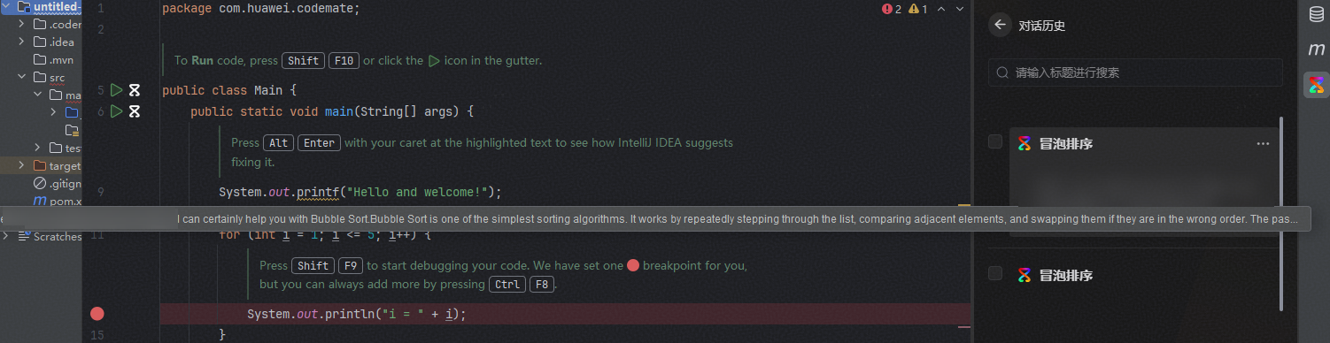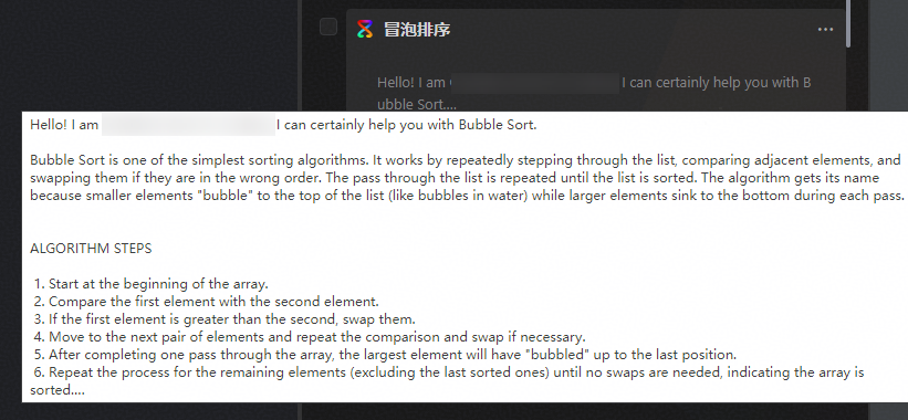 ,重新查看历史对话“冒泡排序”,显示正常换行。