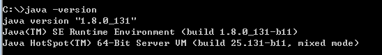 - 打开命令行窗口,输入“java -version”,显示如图1表示配置成功。