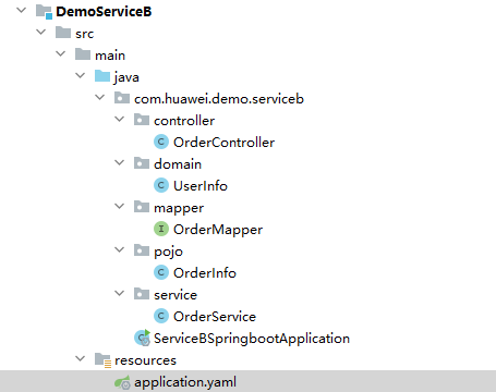 package com.huawei.demo.serviceb.pojo; import com.huawei.demo.serviceb.domain.userinfo; import lombok.data; /** * order信息 * * @author xxx * @since 2023-12-06 */ @data public class orderinfo { private string orderid; private string ordername; private string price; private string userid; private userinfo userinfo; } - 编写service类