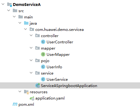 package com.huawei.demo.servicea.pojo; import lombok.data; /** * user信息 * * @author xxx * @since 2023-12-06 */ @data public class userinfo { private string userid; private string username; private string phone; private string address; } - 编写service类