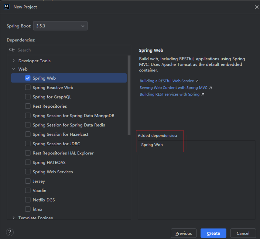 - 使用intellij idea创建一个springboot项目,并如图2所示勾选spring web。