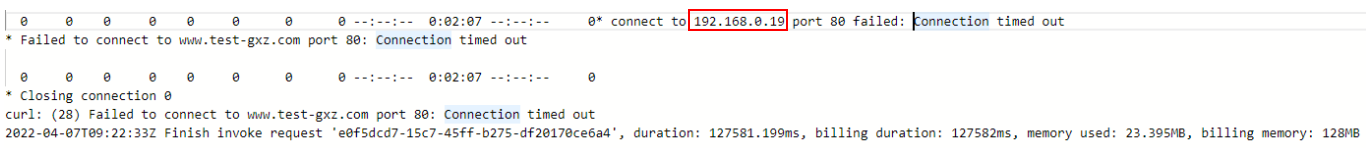# -*- coding:utf-8 -*- import json import os def handler(event, context): os.system("curl -iv www.test.com") - 为函数配置dns与vpc委托