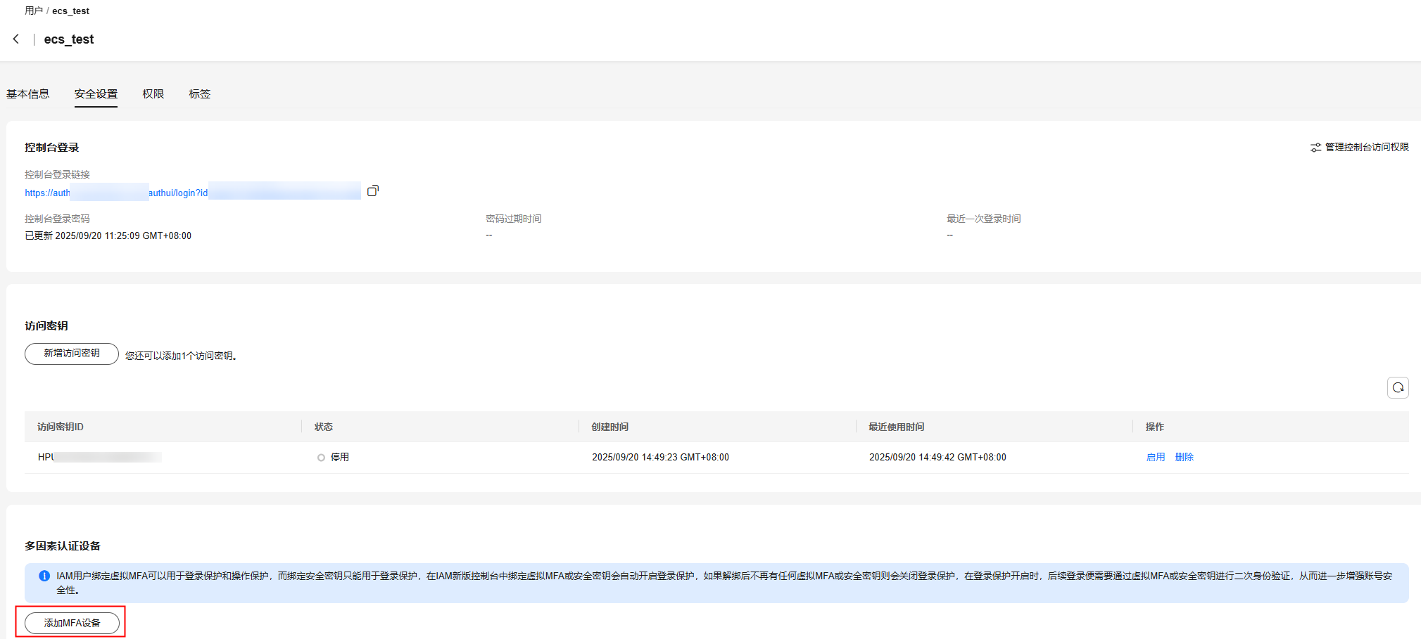 - 单击iam用户名称,进入用户详情界面。