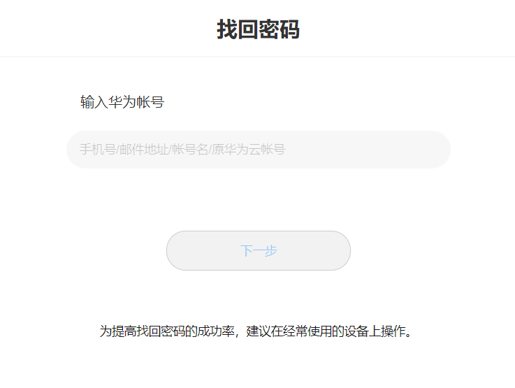 - 输入账号名或注册账号的手机号/邮件地址,单击“下一步”。