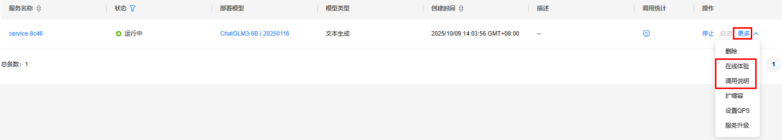 - 模型部署完成后,可以进行在线体验或api调用。在线体验请见maas在线体验。调用部署模型请见调用部署模型。