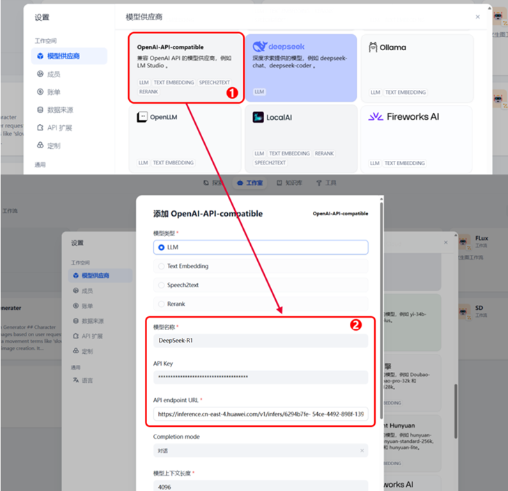 步骤三:在dify平台对接deepseek模型服务