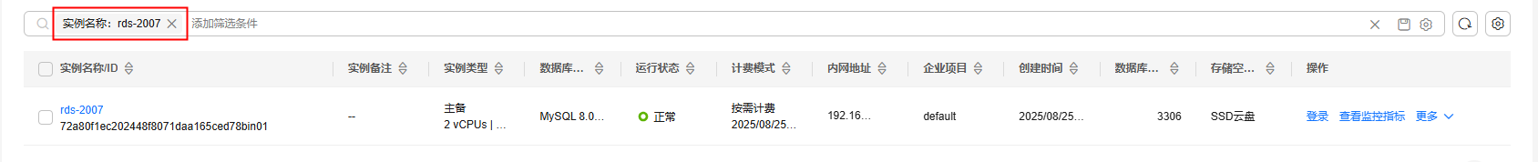 - 如果单击操作列,对实例执行删除操作,确保列表中已无该资源。