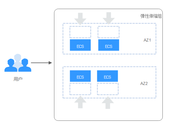 例如,伸缩组目前有四个实例均匀分布在两个可用区内,若该伸缩组下一个伸缩活动增加四个实例时,会在两个可用区内分别增加两个实例,以实现可用区之间均匀分配实例。