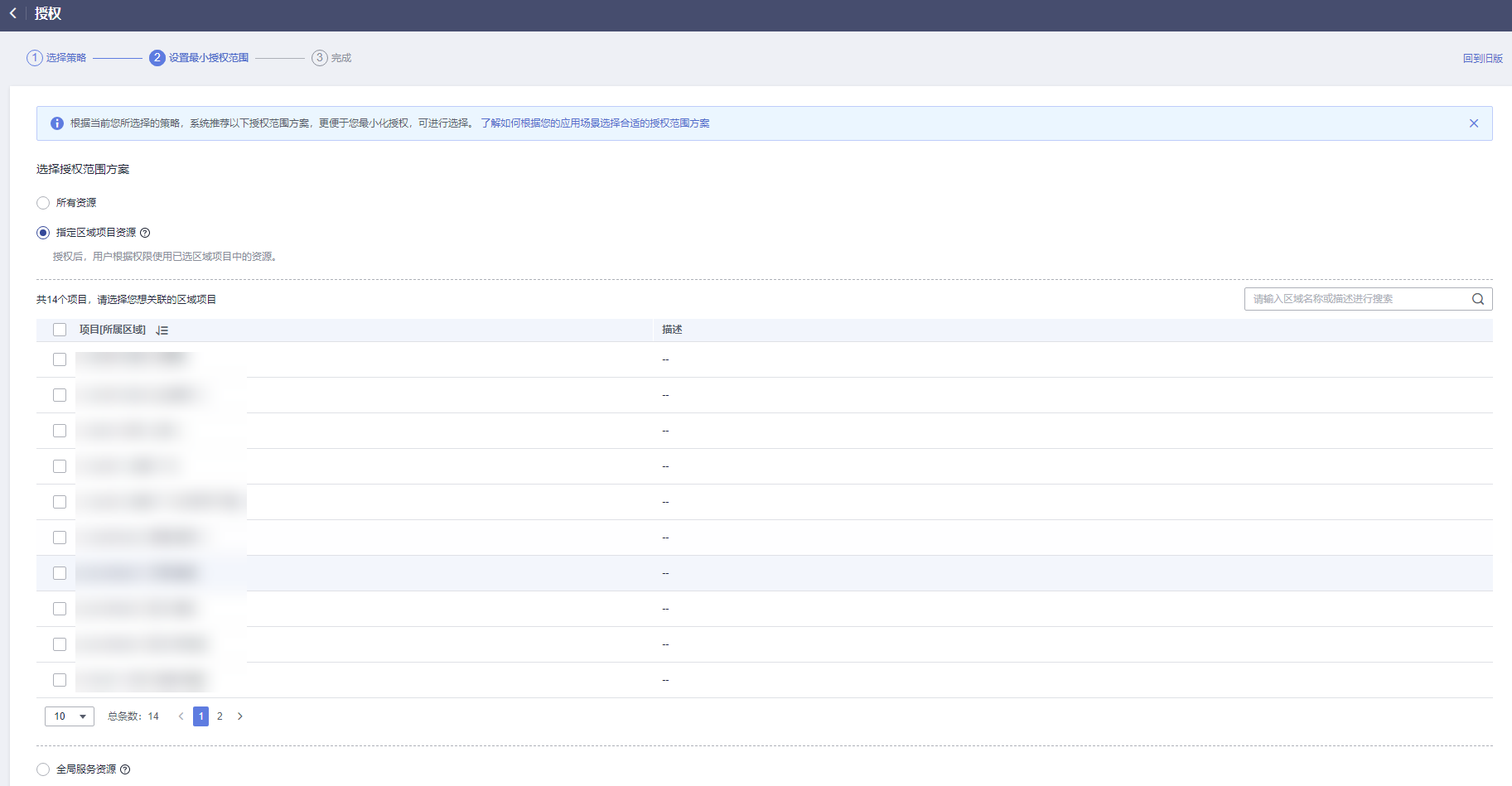 - drs fullaccess授权范围需要先选择全局服务资源授权后,再基于指定区域项目资源设置最小授权范围。