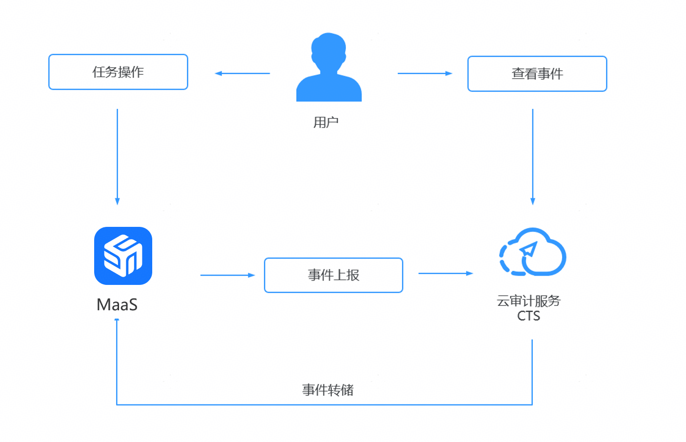 用户开通云审计服务并创建和配置追踪任务后,cts可记录maas的管理事件和数据事件用于审计。