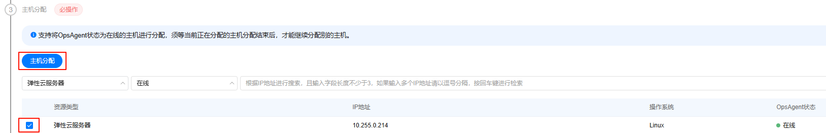 如图2所示,表示opsagent安装成功,安装成功后在下方主机分配列表中该主机状态显示为“在线”。