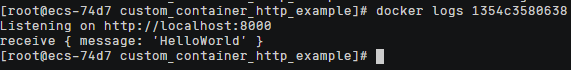 指定镜像的名称为custom_container_http_example,版本为latest,“.”指定dockerfile所在目录,镜像构建命令将该路径下所有的内容打包给容器引擎帮助构建镜像。