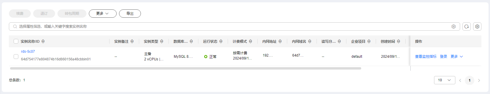 - 查看购买成功的rds for mysql实例。