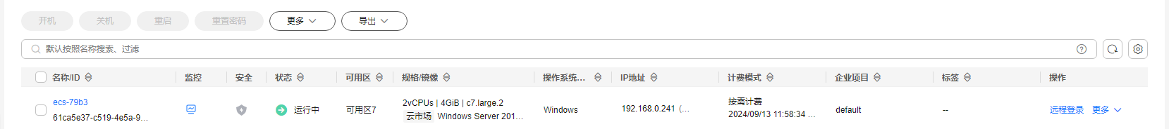 实例的计费模式。