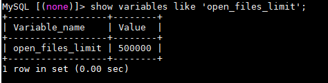 - 查看参数open_files_limit的值(open_files_limit是在rds for mysql启动过程中从操作系统读取的单进程打开最大文件数的值)。